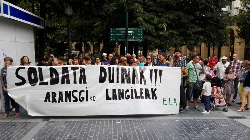 Los empleados de ARANSGI (Asociación de Familias de Personas Sordas de Gipuzkoa) se congregaron ayer frente a la Diputación para poner