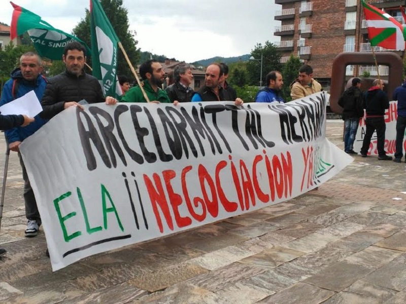 La plantilla de Arcelor Mittal de Hernani se ha concentrado hoy en el centro de la localidad para reivindicar su