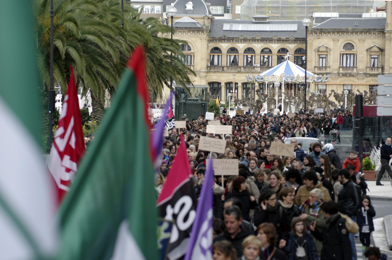 Miles de docentes y personal de la enseñanza pública no universitaria de Euskadi han recorrido Donostia hoy en un día