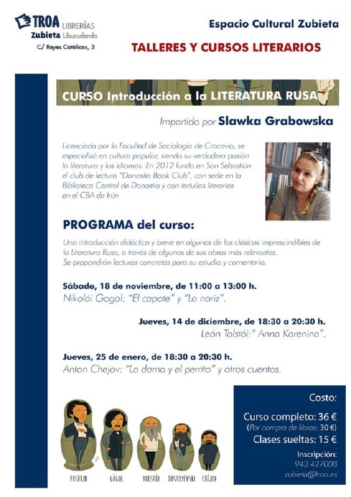 De la mano de la especialista Slawka Grabowska tendrá lugar en Librería Zubieta de Reyes Católicos un curso de literatura