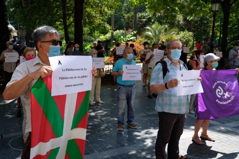 La Asamblea de Pensionista de Alderdi Eder se ha concentrado esta mañana frente a la Diputación en homenaje a los
