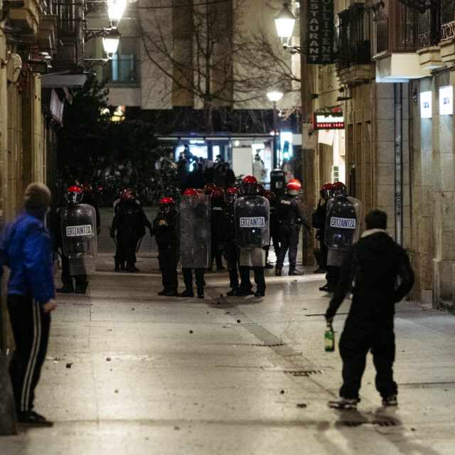 Pasadas las 20 horas ha vuelto a estallar el conflicto, motivado por el rechazo a las restricciones de la pandemia, y la Ertzaintza ha vuelto a tomar las calles