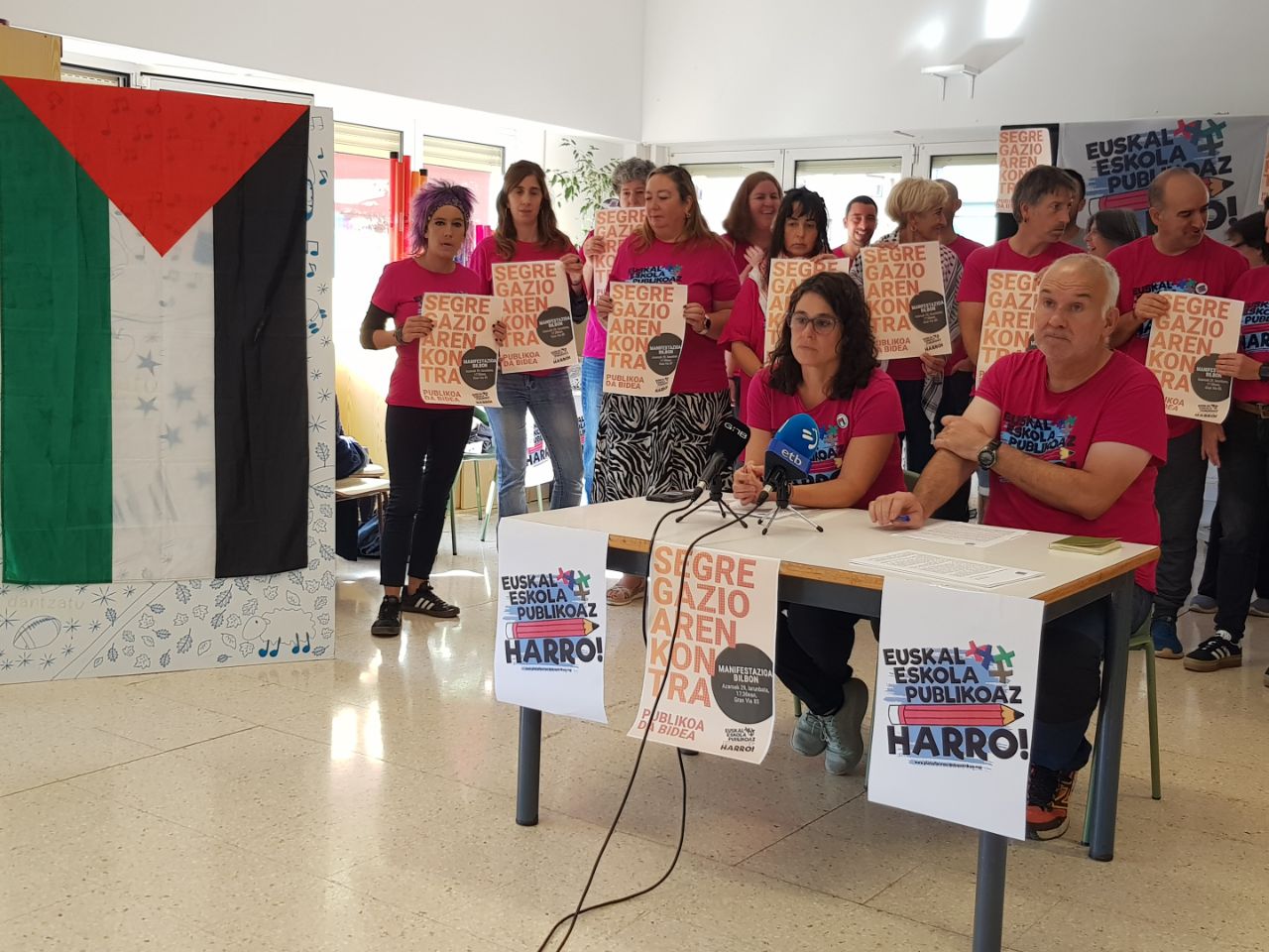 “En esta localidad la práctica totalidad del alumnado o familias con necesidades sociales se encuentra en la Escuela Pública, así como el 87% del alumnado de origen extranjero”, afirma Euskal Eskola Publikoaz Harro Topagunea