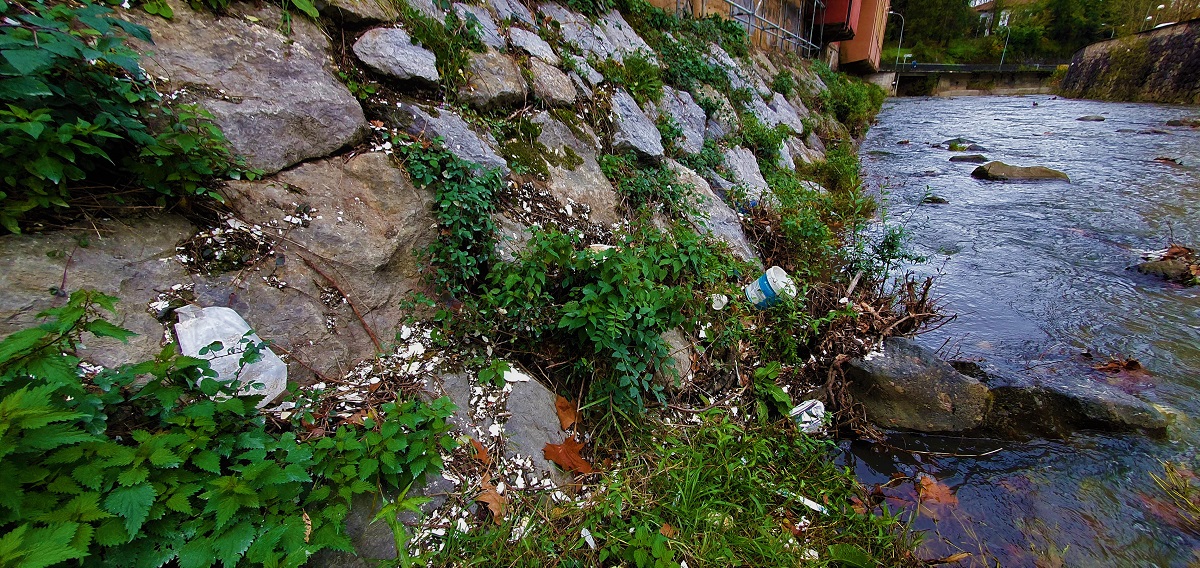 Con dos vídeos, uno sacado en septiembre y otro hoy, Eguzki denuncia cómo la basura de la regata Egino de Azkoitia inicia su camino al río Urola y de ahí al mar