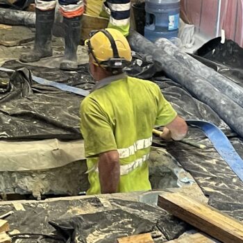 Varios operarios estarían trabajando en el interior del edificio apilando mobiliario