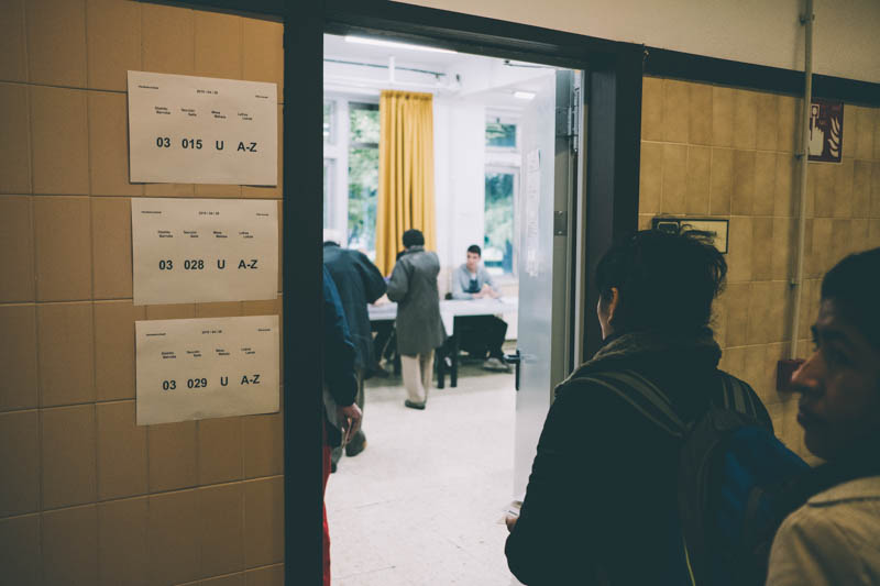 Los donostiarras más madrugadores estaban hoy a las 9 horas en la puerta de sus colegios electorales viendo colocar las