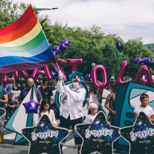 Con mucho colorido y ambiente festivo se han manifestado esta mañana cientos de personas en el centro donostiarra para exigir que