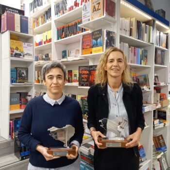 La francesa Delphine de Vigan y la donostiarra Ana Malagon recogen sus galardones en Librería Zubieta. Queda pendiente el tercer premio que recogerá Teresa Valero por ‘Contrapaso. Los hijos de los otros’ en categoría de cómic