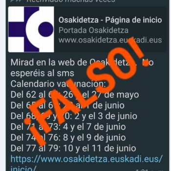 Información general, NoticiaVacunación: Osakidetza alerta de mensajes falsos por whatsapp Por A. E. / Redacción / 29 mayo, 2021 El Departamento de Salud recuerda que los ciudadanos deben esperar a que se les llame