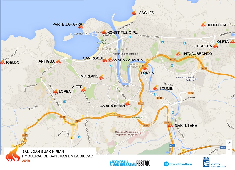 Hogueras purificadoras por toda Donostia y miles de personas participantes protagonizaron el atardecer del sábado, magníficamente veraniego. El fuego, con sus sorginak y bailes, se repitió por los barrios de la ciudad y no hubo incidentes remarcables. Más allá de las hogueras ‘oficiales’ también hubo quienes hicieron fuego en las playas, especialmente en la Zurriola. Bonito atardecer de San Juan.