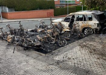 Además del mobiliario urbano calcinado, un coche aparcado en la zona ha sufrido desperfectos a causa del fuego