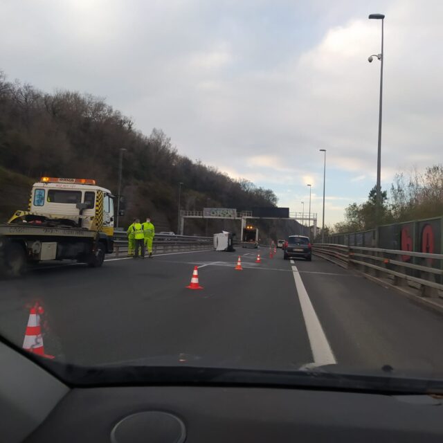 La motocicleta, en la que viajaban dos personas, se estrelló contra el quitamiedos del exterior de la curva de la carretera de acceso al túnel de la GI-41