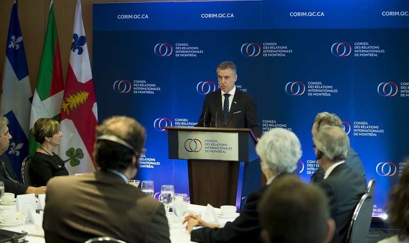 El Lehendakari Iñigo Urkullu ha reivindicado en el Consejo de Relaciones Internacionales de Montreal (CORIM) el reconocimiento de Euskadi como