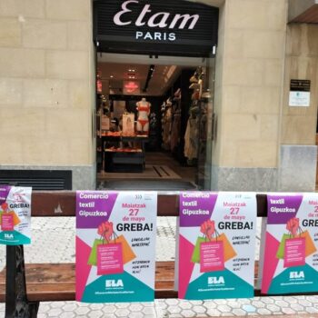 Varias tiendas han secundado con protestas la huelga convocada por ELA y LAB y algunas no han llegado a abrir sus puertas