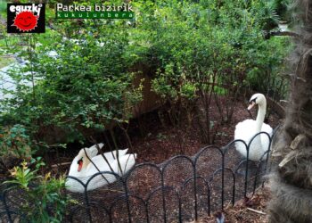 La cisne hembra de la plaza Gipuzkoa, «engañada», incuba huevos de yeso