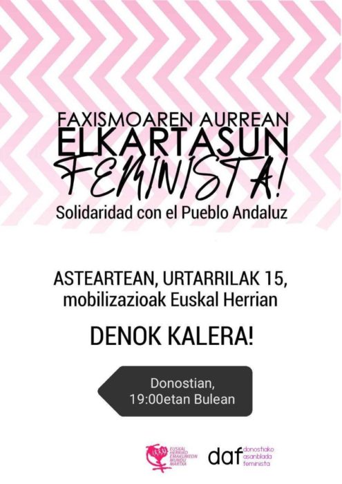 Ante los últimos casos de presuntas agresiones sexistas acontecidos en el territorio gipuzkoano durante las últimas horas, en lugares como
