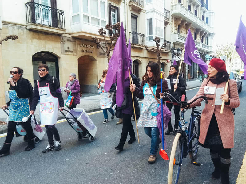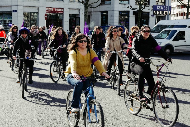Desde distintos barrios de la ciudad han partido grupos de mujeres en dirección al centro para participar en la concentración del Boulevard al mediodía. Entre los grupos cabe destacar la ‘bicicletada desobediente’ que ha partido de Amara en dirección a la Zurriola. En el Boulevard han empezado a concentrarse cientos de manifestantes.