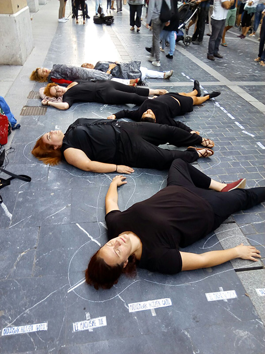 La plaza Gipuzkoa vivió ayer una nueva ‘performance’ en contra de la violencia machista y en recuerdo de las mujeres