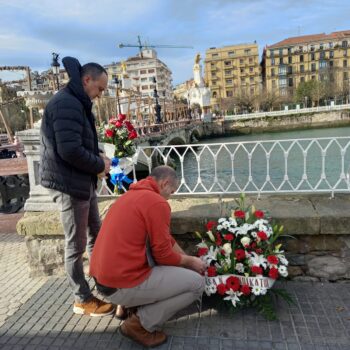 Ofrenda floral dos años después de la muerte del ertzaina Iñigo Etxarri en el Urumea