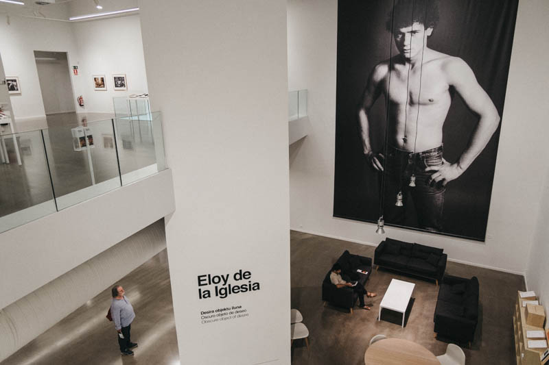 Una foto de gran formato nada más entrar con la imagen de José Luis Manzano, el mítico y malogrado actor de El Pico, como un póster para adolescentes que lleva a otra época, es lo primero que el visitante se encuentra en su visita a la exposición de Eloy de la Iglesia en Artegunea, ‘Oscuro objeto de deseo’.