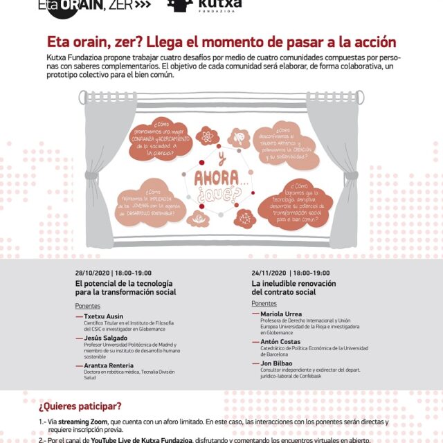 La próxima cita de esta iniciativa de Kutxa Fundazioa será el día 28 de octubre y participarán Arantxa Rentería, Txetxu Ausín y Jesús Salgado