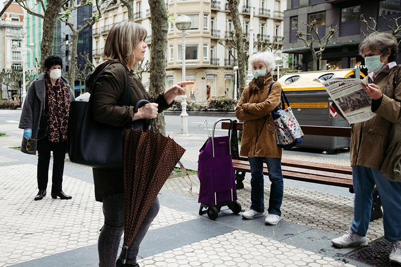 La cola ante un comercio o en las marquesinas del autobús es de los escasos puntos que llevan a pararse