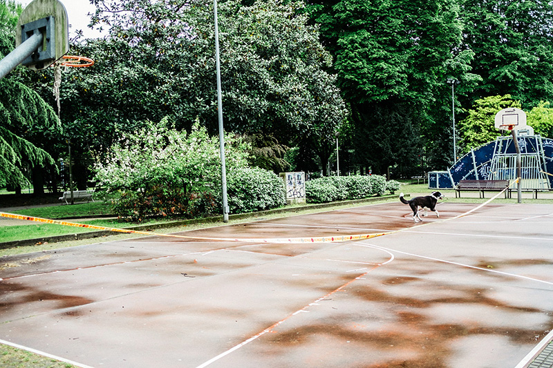 Hasta las canchas deportivas están precintadas como se ve en el caso de ésta de Amara. Y los parques infantiles.