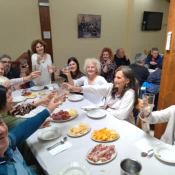 La candidata a diputada general de Gipuzkoa Miren Echeveste y el candidato a la Alcaldía de Donostia Víctor Lasa participan en una comida popular en Abadiño con la militancia