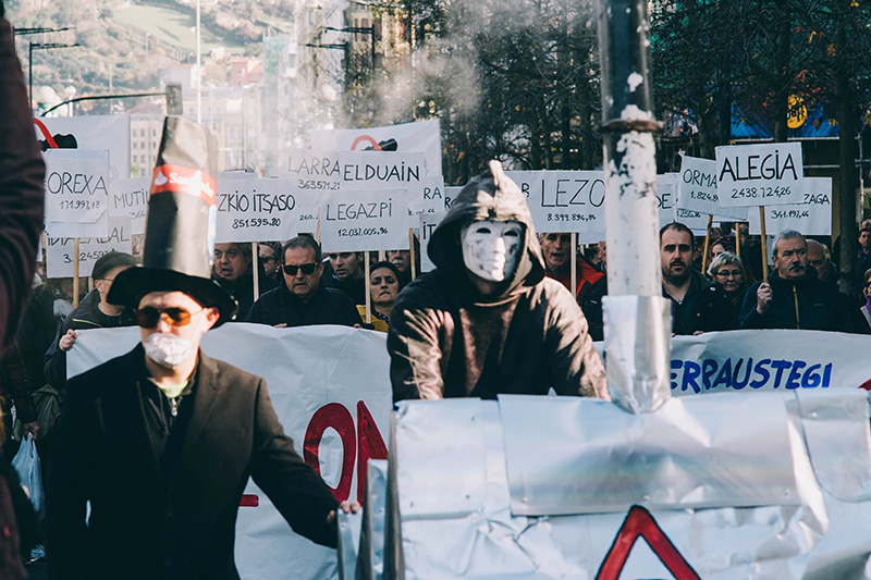 El movimiento vecinal Satorralaia por la paralización del la Pasante del Metro ha realizado hoy una acción teatral y humorística