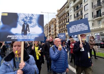 La manifestación que ha salido del Kursaal a las 19.30 horas se enmarca en la Asamblea General Federal de la ONG que se celebra este fin de semana