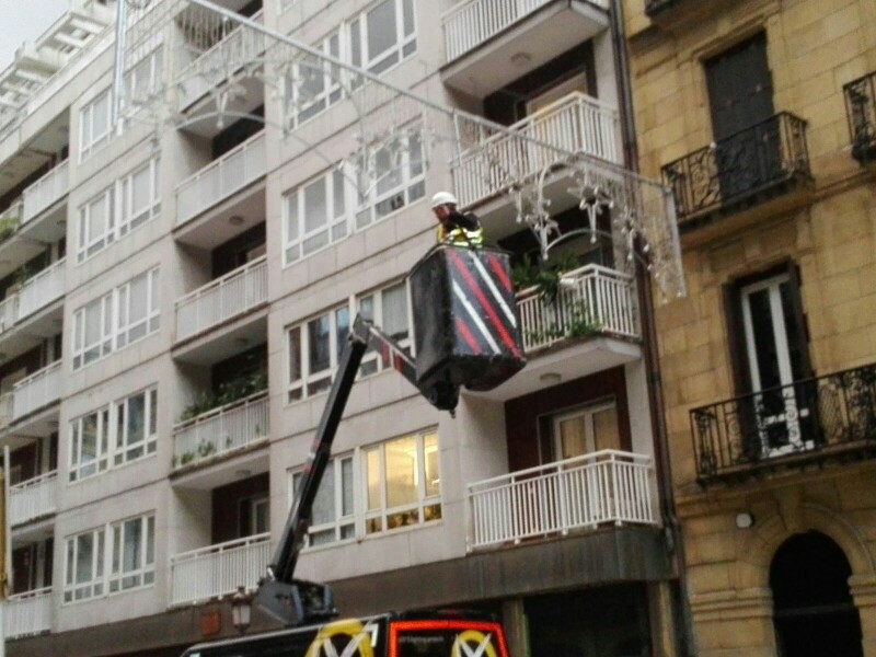 Operarios de Iluminaciones Ximenez han comenzado ya a instalar las luces navideñas y han trabajado el miércoles en la calle
