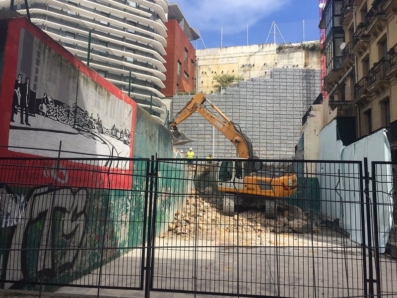 Ayer fue demolido el frontón Arroka que, tras y como fue decidido por los vecinos el pasado marzo, será sustituido