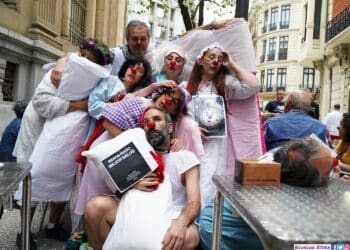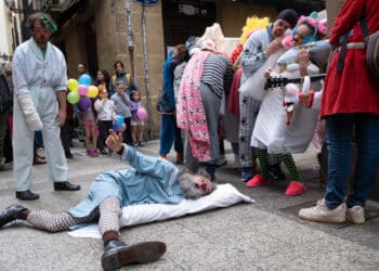 Parte Zaharrean Bizi organizó la ‘performance’ con la dirección de la clown Virginia Imaz. El objetivo: defender el derecho al descanso