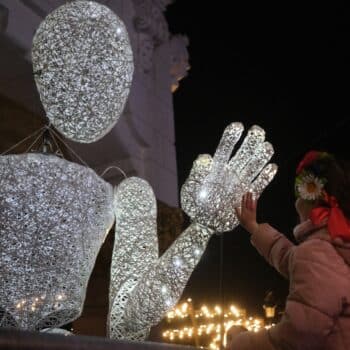 Muchedumbre en el entorno del puente de María Cristina para disfrutar de los primeros compases de las fiestas entre luces, los paseos del gigante Dundu y los fuegos artificiales