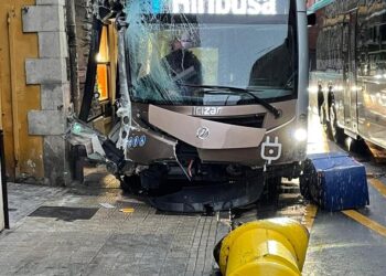 Un autobús urbano ha sufrido un accidente esta mañana produciendo importantes daños en el local