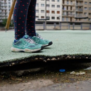 El suelo se encuentra levantado en numerosos puntos de este parque infantil de Amara Berri que desde hace tiempo está en mal estado
