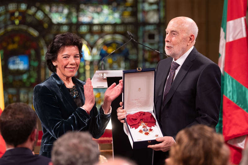 Raúl Guerra Garrido ha recibido esta tarde el homenaje de la Diputación Foral de Gipuzkoa y la Gran Cruz de la Orden Civil de Alfonso X el Sabio, esta última de manos de la ministra de Educación Isabel Celaá. Tanto su compañero de armas literarias Fernando Aramburu, encargado de la laudatio, como las autoridades Celáa y el diputado Denis Itxaso han coincidido en el «ejemplo moral» de Guerra Garrido en años muy difíciles en Euskadi.