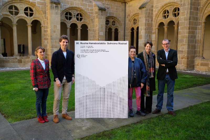 Con un cartel que pretende representar el encuentro entre dos personas que leen el mismo texto a la vez pero en distinto orden hasta formar un coro, la artista Itziar Okariz ha pasado a formar parte de la historia de la Quincena Musical, que en su 80ª edición contará con la imagen de la autora.