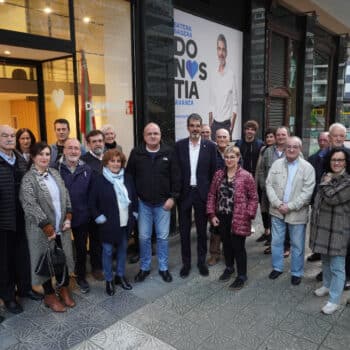 El alcalde y candidato a la reeleción participa en un acto electoral en el batzoki de Amara junto a Joseba Egibar