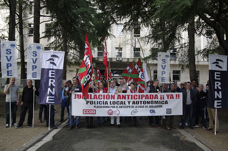 Policías locales y autonómicos se han manifestado esta mañana en Pío XII, frente a la Delegación de Gobierno, «pasados quince