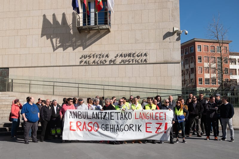 Los trabajadores de ambulancias de Gipuzkoa se han concentrado frente al juzgado de Donostia para denunciar las agresiones que sufren