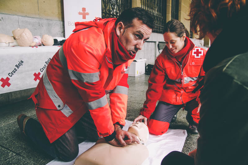 Cruz Roja ha dado a conocer la labor que realiza esta mañana en la plaza Gipuzkoa con carpas informativas donde