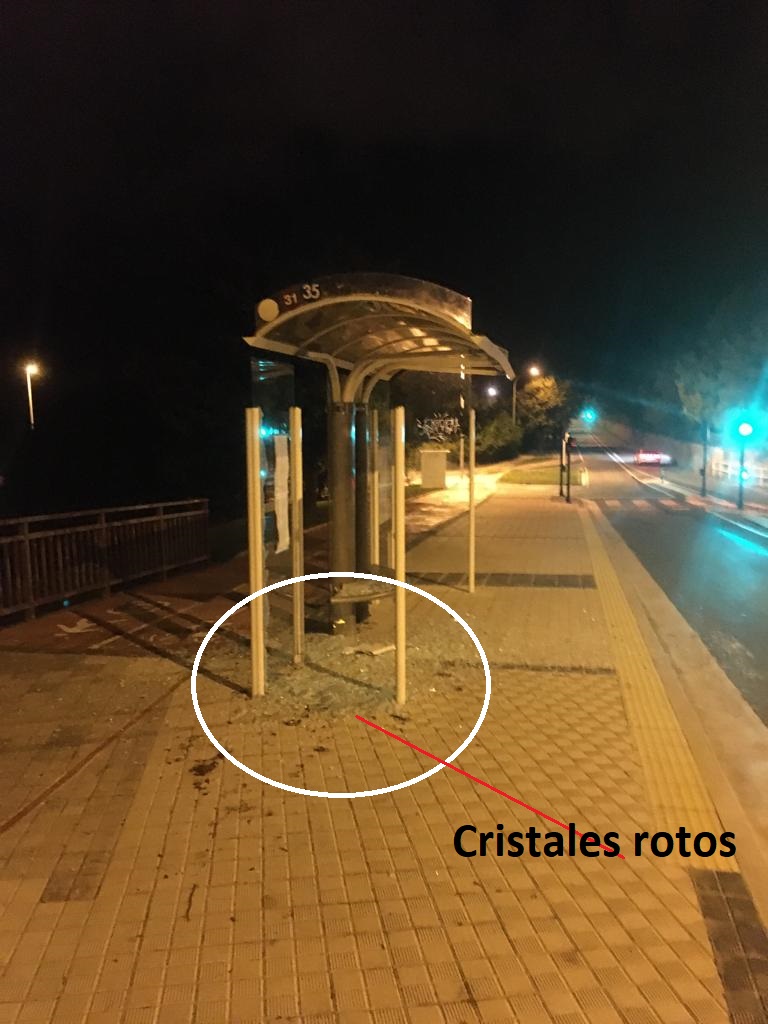 En Munto los vándalos ya habían dejado huella en los asientos y el escenario, y ahora, en el paseo, en la marquesina de la parada del autobús (frente a la Toka de Matxain)