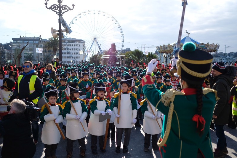 Casi 5.000 niños han desfilado muy dignamente por el Centro de Donostia, hoy, en una Tamborrada Infantil con un numeroso