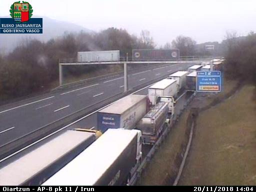Este martes está resultando muy complicado en la frontera de Irun, en la AP8, donde se han llegado a contabilizar