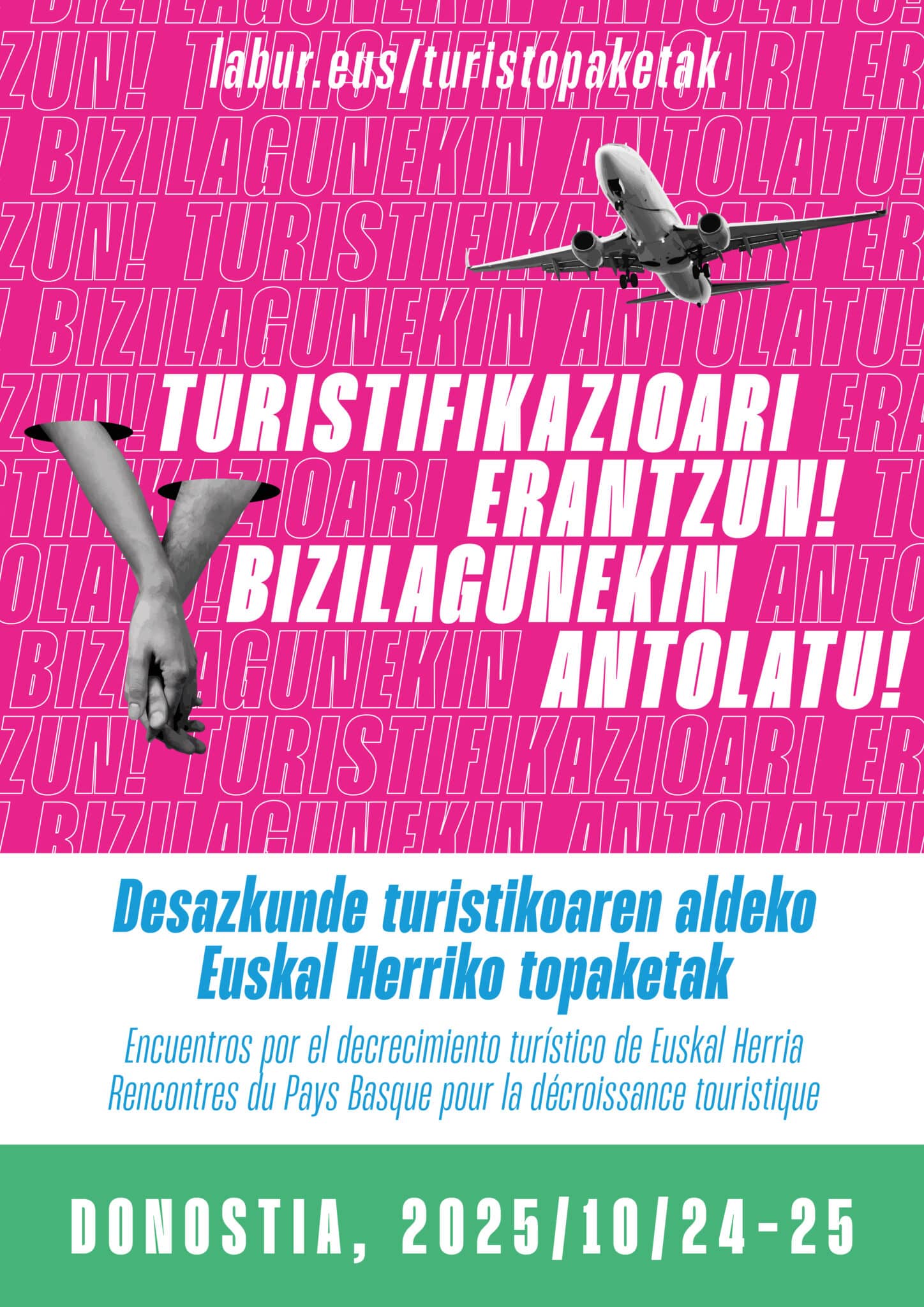 La plataforma donostiarra contra la turistificación y sus similares del sur de Europa han lanzado esta contrainiciativa ante el Día Internacional del Turismo, que es también hoy mismo, 27 de septiembre