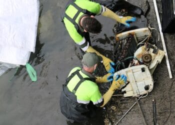 Ambas orillas estaban controladas por agentes de la Guardia municipal y han acudido dos bomberos con una moto de agua