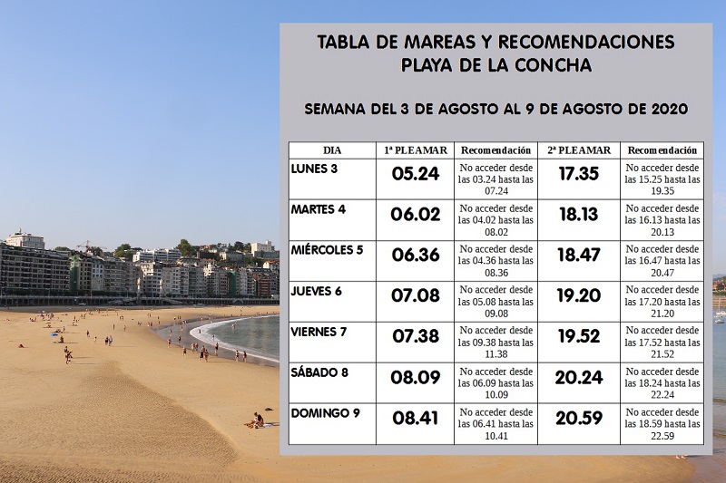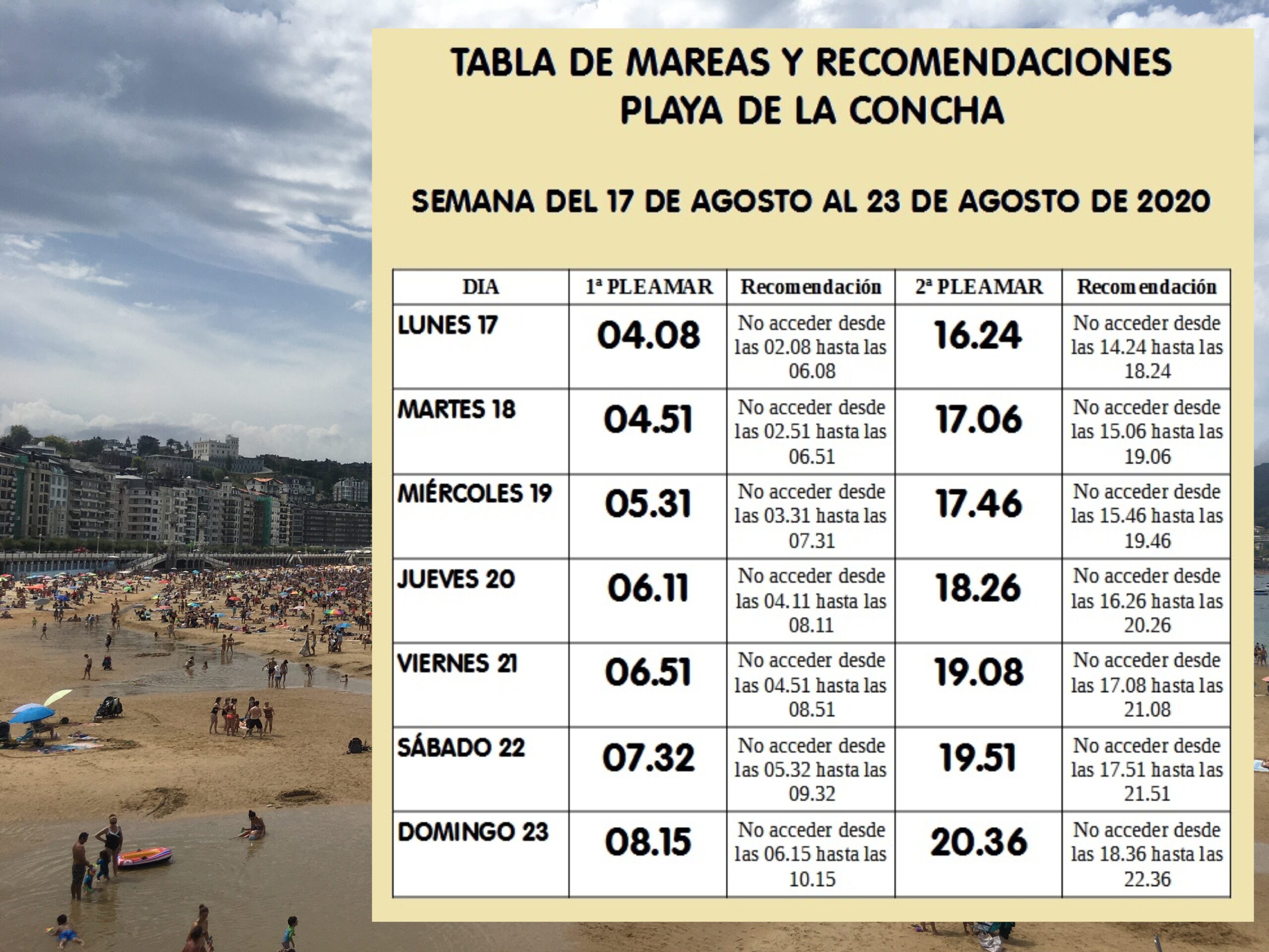 Playa de la Concha: Tabla de pleamares 17-23 de agosto