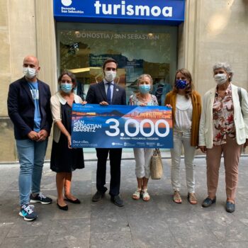 El pasajero premiado ha recibido un cheque por valor de 200 euros para consumir en el comercio local adherido a la plataforma San Sebastián Shops