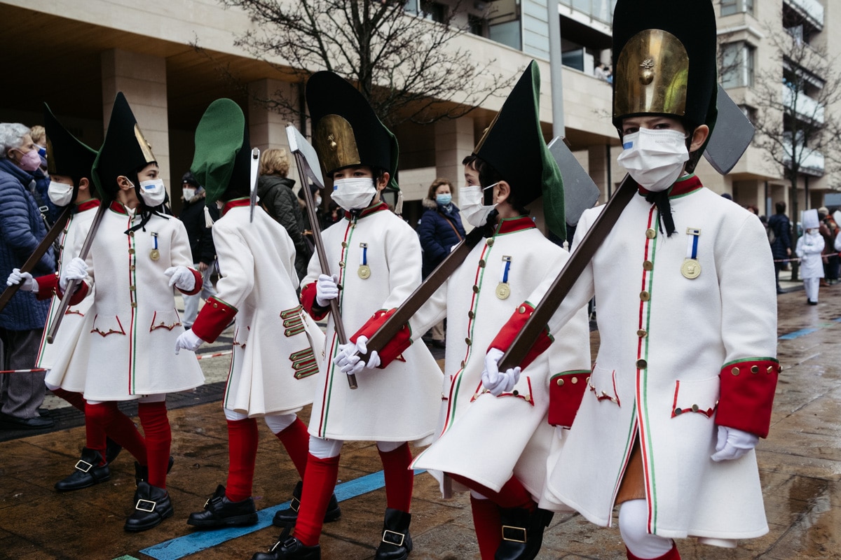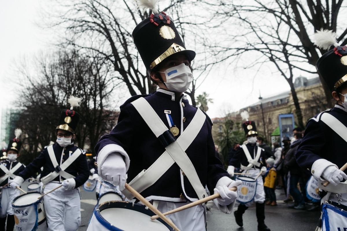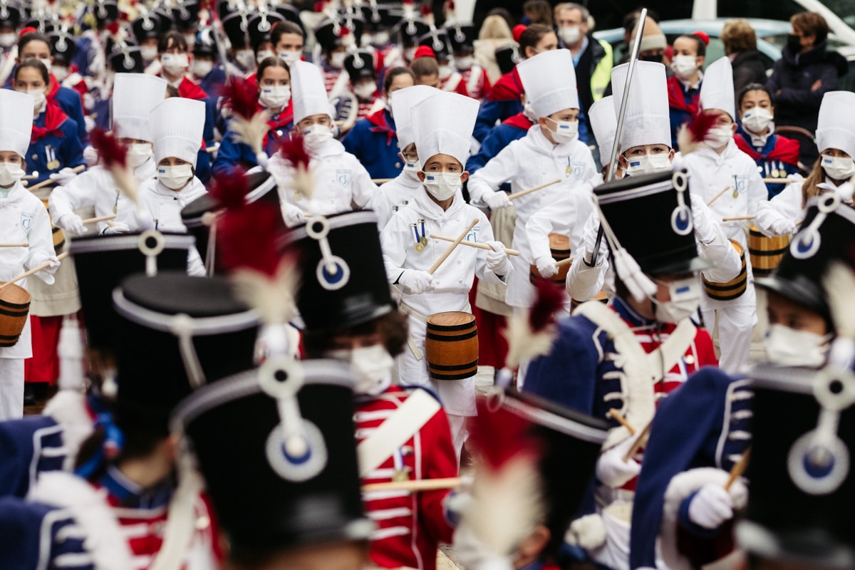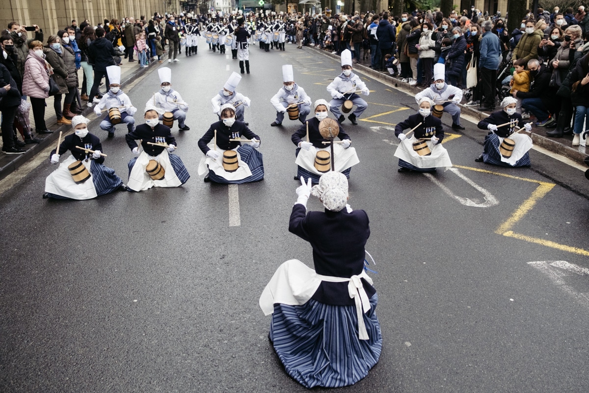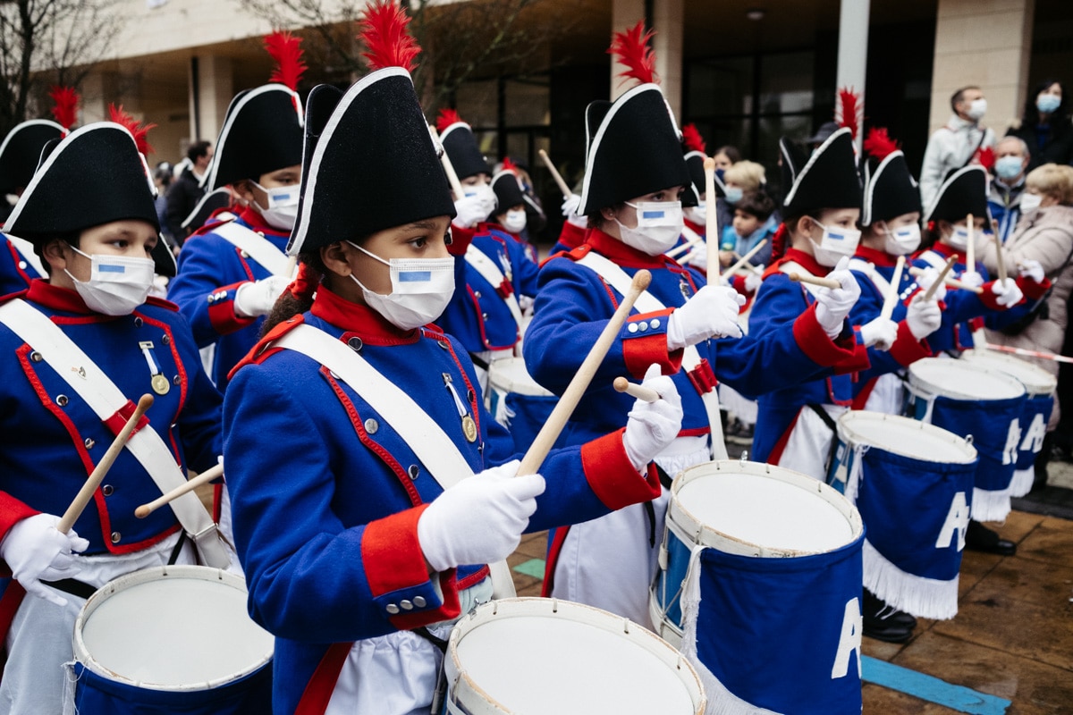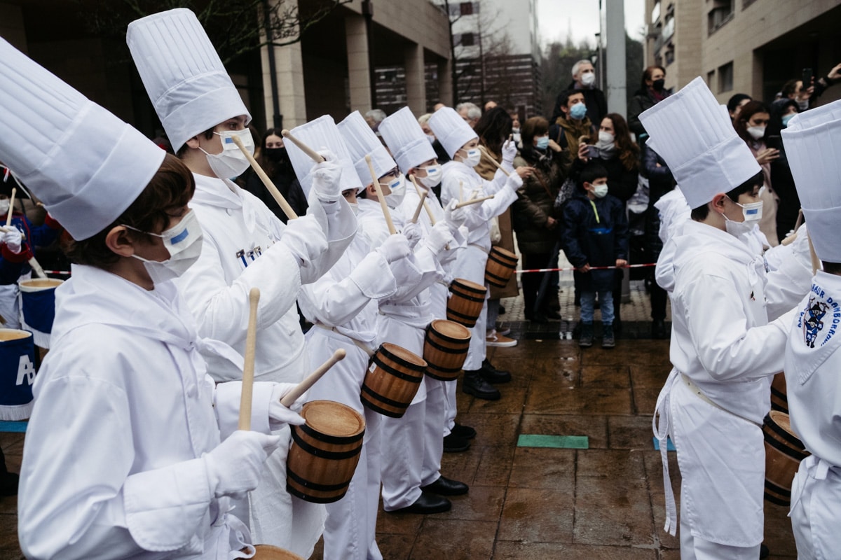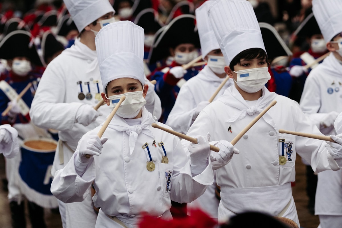 La Tamborrada infantil de este mediodía en Donostia, con las compañías separadas en cinco trayectos distintos, evitando aglomeraciones y con distancias, pasará a la historia como ‘la tamborrada del covid’.